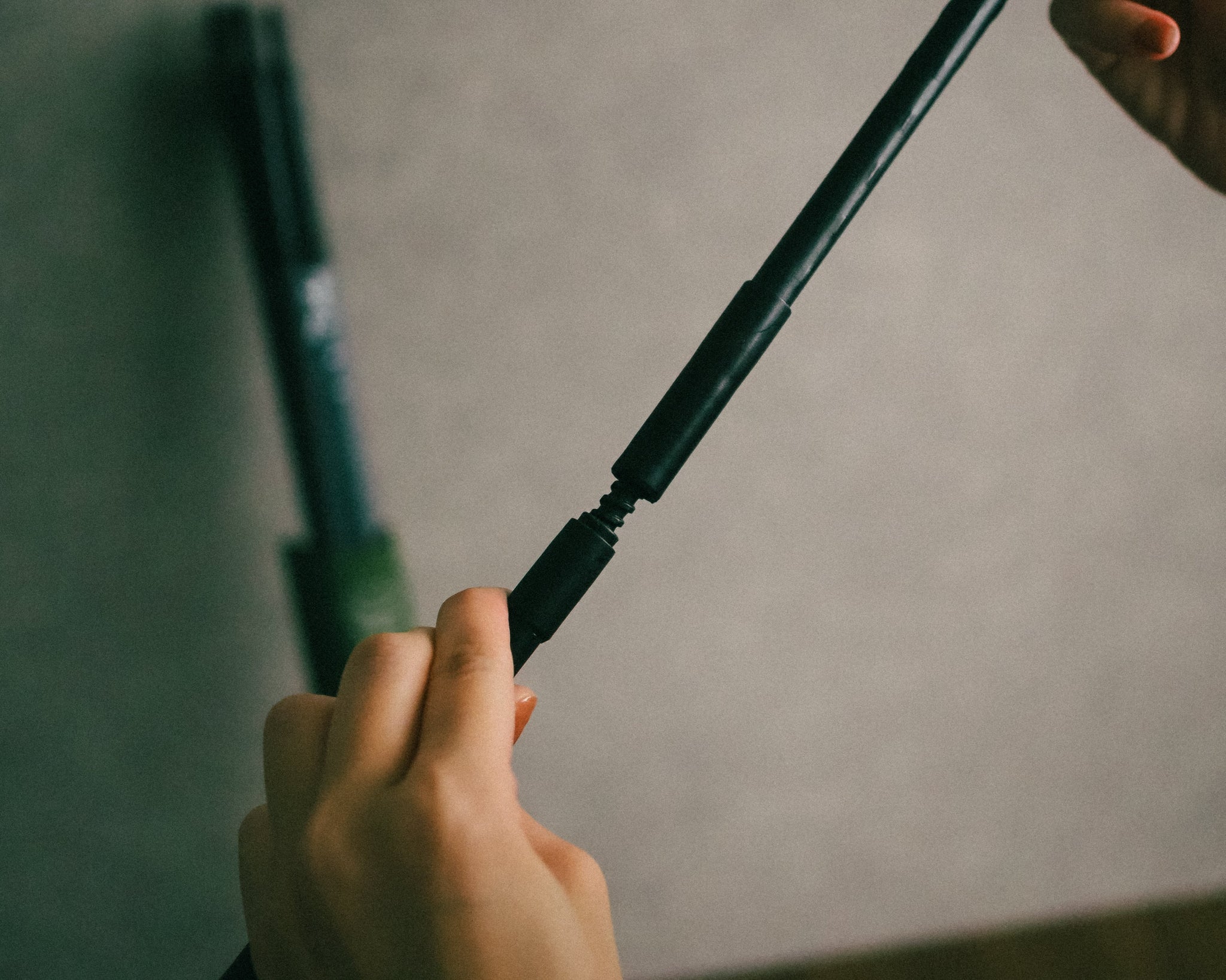 最初は60cmのコンパクトサイズからスタート。それを、ネジ式ジョイントでつなげるだけで長さを自由に調整できます。